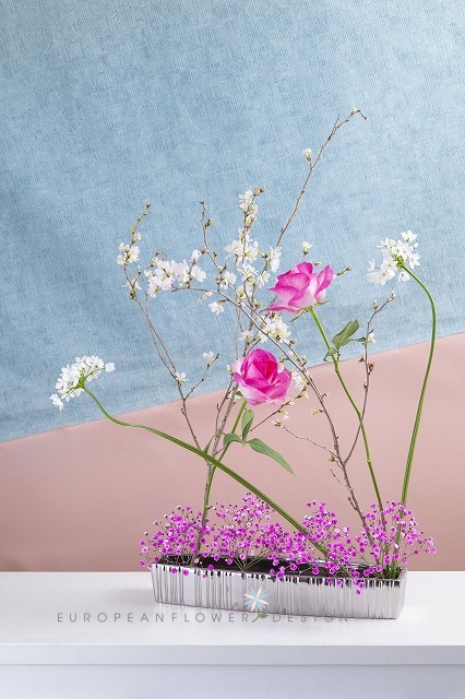 日本古来のいけばなを、フラワーアレンジメントの発想から捉えた斬新的なモダンフラワーアートを学ぶコースです。いけばな経験のある方もない方も、柔軟な発想で自由にデザインする楽しさを身につけることができます。